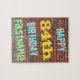 Este design de quebra-cabeça com tema de aniversário divertido apresenta uma mensagem como "FELIZ 84.º ANIVERSÁRIO, NOME PRÓPRIO!", onde o nome pode ser personalizado. O fundo apresenta uma representação de uma parede de tijolos constituída por alguns tijolos de cor castanha avermelhada. O texto de mensagem personalizável apresenta cores como azul, amarelo e verde, e tem uma aparência inspirada pela do grafite pintado. Um quebra-cabeça como este pode ser usado como uma maneira divertida de enviar desejos de aniversário a alguém que comemora seus oitenta e quatro anos, e que talvez goste muito de fazer quebra-cabeça. [~Z0000285]