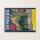 Um poster de viagens vibrante promove Brisbane como a "Cidade do Rio do Norte". Apresenta uma visão cênica da cidade, mostrando um farol, um verde-luxuoso e uma proeminente poinsettia vermelha. Um quebra-cabeça excelente para diversão familiar.
