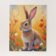 Brown Bunny Floral Field Animal Painting Jigsaw Puzzle