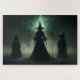 Entra num mundo de encantamento negro com esta enigmática ilustração da tríplice bruxa. Esta trabalho de arte apresenta três bruxas misteriosas, coladas em teias elaboradas e medievais e chapéus de torre, exuando uma aura de poder arcana. Esta impressão de arte de fantasia gótica é perfeita para fãs de temas de bruxaria, estética mágica escura e decor místico.