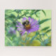 Aproveite montar esta imagem de um felpudo amarelo de mamangabas ocupado coletando pólen em uma margarida roxa e apreciando o belo quebra-cabeça de serra ensolarado.