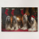 Uma cena encantadora captura a essência do conforto e do espírito de feriado como companheiros peludos enfeitados em Papai Noel se reúnem em torno de uma lareira estaladiça. O calor que emana da lareira cria uma atmosfera fria para estes adoráveis caninos, enquanto que as meias festivas se penduram no fundo, melhorando o ambiente feliz. A ilustração encantadora retrata uma imagem eterno de companheirismo e alegria festiva, perfeita para celebrar o feriado com um toque de charme canino.