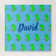 Bela caricatura. Design de desenho original em verde. Fundo azul.