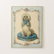 Quem não resiste a este adorável cão com as patas levantadas, sentado numa almofada azul? Projetado por Simplesmente Vintage por Robin; trabalho de arte cortesia de The Graphics Fairy