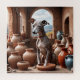 Arte digital de um cão grego italiano numa sala com muitos potes de barro.