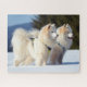 Cachorros Samoyed na quebra-cabeça de serra de Neve