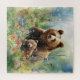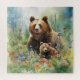 Quebra-cabeça com a bela pintura de um urso-mãe e seu filhote num campo de flores coloridas a aquarelas.