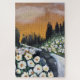 Belo campo de margaridas em meio ao rio apressado. Esta pintura acrílica calma e inspira.