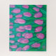 Quebra-cabeça com pintura floral colorida, cheio verde esmeralda de lindas flores de primavera. As tulipas cor-de-rosa simbolizam um sentimento de felicidade, autoconfiança e positividade. Este excelente ajustado para Páscoas ou saudações do dia da Mulher, ou como presentes de aniversário para meninas e mulheres.