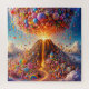 Imaginem um vulcão vibrante e caprichoso a erupir-se numa paisagem fantástica. Em vez de lava derretida, o vulcão lança uma cascata de doces e doces coloridos, incluindo ursos gengomados, lábios, bares de chocolate e borrachas de arco-íris. A erupção cria uma exibição deslumbrante de doces açucarados chover para baixo com um efeito brilhante e iridescente. O céu está cheio de pedaços de doces tipo confete, enquanto a paisagem circundante é uma terra maravilhosa revestida de doces com rios de chocolate e nuvens de algodão doce. A cena é banhada num brilho quente e lúdico, melhorando a atmosfera mágica e alegre desta doce erupção.
