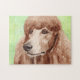 Persiga os quebra-cabeça de serra de vaivém impressos com arte da caniche de um retrato original do cão da aguarela