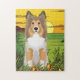 Cão Collie em um campo de flores em uma fazenda. Muitos desenhos de animais de estimação e cenários em minhas lojas. Adicione este design a outros produtos. Adicione texto.
