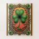 Essa ilustração requintada de um trevo é projetada no estilo decorativo Celta com ornamentos complexos e tons quentes. Um símbolo de sorte e prosperidade, rodeado por delicadas entalhes e detalhes da colheita, é uma escolha perfeita para amantes da cultura irlandesa e da estética mística.