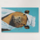 Um retrato charmoso e caprichoso de uma capybara, o maior roedor do mundo, vestida com um traje tipo spa. O animal é enfiado numa toalha branca com outra envolta em torno da cabeça, colocada contra um fundo azul-suave. A expressão calma e serena de capybara dá a impressão de que está a desfrutar de um momento de relaxamento, acrescentando um toque de humor e calor à cena. O trabalho detalhado de bruxaria põe em evidência o pelo de capybara e a textura macia das toalhas, fazer esta trabalho de arte de uma peça deliciosa e leve.