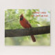 Um quebra-cabeça divertido para qualquer observador/amante de pássaros! Fotografia de um lindo cardeal norte vermelho, posando na árvore. O ditado carinhoso sobre cardeais e anjos está impresso no topo da foto: Cardinais aparecem quando anjos estão próximos.