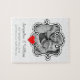 Criar o seu possuem muito, quebra-cabeça original da lembrança usando sua própria foto do casamento. A área de quadro encaracolado do modelo da foto do estilo bonito do scribble do doodle swirly destaca sua fotografia, se esteja na cor preto e branco ou completa. O coração vermelho pequeno adiciona no centro um pop extra da cor, e há três campos feitos sob encomenda do texto para seus nomes, data do casamento, e lugar da cerimónia de casamento.