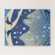 Celebre as férias de Natal e aproveite o inverno com esta quebra-cabeça divertida. Esta design azul e branca apresenta uma cena de inverno com neve caindo sobre colinas e árvores sem folhas. Dois pássaros apaixonados se enfrentam. Um coração cor-de-rosa flutua acima e entre eles.