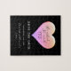 Casamento preto moderno, simples e divertido salva a quebra-cabeça da data, com citação romântica e belo coração rosa, símbolo de amor forte, interminável, calor, riqueza e fé. Anúncio de casamento inesquecível! Presente perfeito para a pequena coorte de seus queridos e especiais visitantes. Sua convidada se sentirá entusiasmada quando você enviar a eles este favor único, adorável e memorável que tem algum significado pessoal para eles e mantém a memória eterna depois do dia do casamento!