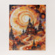 Um mundo assustador com esta quebra-cabeça com um grande e assombroso castelo sob um céu espiral tortuoso e feroz. Perfeito para os amantes do Dia das Bruxas e da fantasia, este design vibrante é uma aventura divertida e desafiadora para todas as idades.