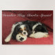 Esta é uma quebra-cabeça, com uma fotografia original do mais bonito Tricolor Cavalier King Charles Spaniel, descansando com a cabeça no seu brinquedo favorito.