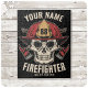Caveira de Bombeiro Personalizada design Departamento de Bombeiros - Esqueleto com Capacete Vermelho e Machados Duplos. Personalize com seu Nome, Número da Estação/Departamento e localização.