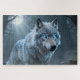 Unleash the power of the ancient wild with this Celtic Spirit Animal Wolf Jigsaw Puzzle featuring a hyper realistic 3D render in breathtaking 8K ultra detailed quality. Created with Unreal Engine 5-level realism and PBR photorealistic textures, this striking design showcases a powerful Celtic wolf spirit with glowing blue eyes piercing through a misty forest night.