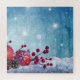 Esta design apresenta uma bela imagem festiva de uma paisagem de inverno com neve caindo e estrelas brilhando. Há uma variedade de bagas sazonais e bolotas no primeiro plano.