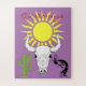 sol grande, braços tortos, saguaro cactus kokopelli e crânio de touro branqueado para personalizar, mudando para seu nome