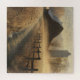 Quebra-cabeça Cena Rural Nebulosa de Fazenda. © Quebra-cabeça Mundo Mágico no Zazzle. Este quebra-cabeça tem uma bela cena rural ou um campo nebuloso com um celeiro de fazenda e silo no final da estrada de terra