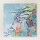 Cenário Subaquático com tartarugas, fauna subaquática, estrelas-do-mar, conchas.