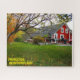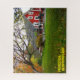 Aproveite passar algum tempo nesta quebra-cabeça de uma pequena casa vermelha que fica atrás de uma árvore inclinada que está perdendo suas folhas durante a temporada de outono em Princeton, Terra Nova.