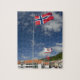 Quebra-cabeça Centro do porto histórico de Bergen com bandeiras