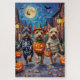 Adorável Cesky Terriers vestidos com fantasias de Halloween carregar baldes de abóbora enquanto trick-or-tratando sob o céu iluminado pela lua. Este design festivo põe em evidência a casaco, a natureza leal e alegre da raça, e a personalidade alegre, capturando perfeitamente a atmosfera assustadora e divertida da noite de Halloween. Uma celebração encantadora para amantes de cães e fãs de Halloween.