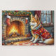 Quebra-cabeça Chinook Sitting by Fireplace with Christmas Lights