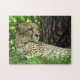 Uma imagem de perto de um quebra-cabeça de imagem de Cheetah que trará horas de prazer a qualquer um. Imagem de Jean Beaufort