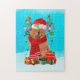 Quebra-cabeça Chow Chow na neve com presentes de Natal