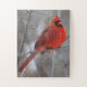 Quebra-cabeça Chunky Bright Red Male Cardinal in Winter Snow