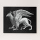 Quebra-cabeça em uma elegante cinza prateada / imagem de cinza de um grifo, uma cruz mítica entre uma águia e um leão, com um sutil olhar de 3 d sobre um fundo preto