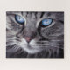 Quebra-cabeça Cinza Surreal Gato Azul Olhos Azuis Duro