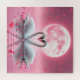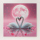 Dois cisnes fazer coração em um lago rosa em frente a uma lua rosa.