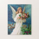 Um quebra-cabeça encantador do natal vintage que caracteriza um anjo bonito com um cheio da cesta dos brinquedos, pintado pelo ilustrador americano/artista comercial Ellen Hattie Clapsaddle.