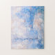 Um quebra-cabeça clássico bonito da paisagem do inverno que caracteriza a entrada a Giverny sob a neve, pintada pelo pintor impressionista francês Claude Monet.