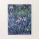Um quebra-cabeça clássico bonito da flor que caracteriza as íris, pintadas pelo pintor impressionista francês Claude Monet.