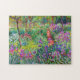 Um clássico colorido quebra-cabeça com o jardim da íris em Giverny, pintado pelo pintor impressionista francês Claude Monet.