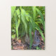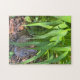 Um coelho de cauda-do-algodão bonito se senta debaixo das folhas de um lírio-tigre num primavera ensolarado. Faz uma quebra-cabeça desafiadora.