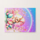 Belo Coelhinho com arco-íris e ovos e flores coloridos