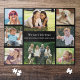 Dê ao melhor pai do mundo uma foto personalizada divertida colagem em jigserra preta com 8 fotos da família de seus filhos, outros familiares, animais de estimação, etc., "Eu te amo" ou "Nós te amamos", e nomes da família.