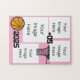 Basquete 4 Photo Collage Quebra-cabeça com fundo rosa. Personalize ou exclua o número e o ano.