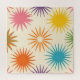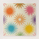 Ignite retro joy with this vibrant mid-century modern starburst pattern. Bold, radiating bursts in sunny orange, golden yellow, teal blue, deep purple, magenta pink, and lush green explode across a soft cream background, featuring textured, hand-printed details for authentic vintage charm. The playful yet sophisticated arrangement captures the optimistic energy of the 1950s and 60s, bringing dynamic color and atomic-era flair.