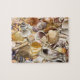 O design do quebra-cabeça é de diversos seashells coloridos ilustrados pelo alvorecer Witherington do artista.